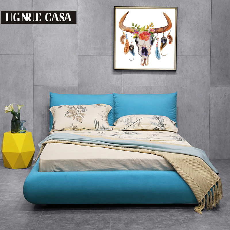 LIGNRUE double bed fabric simple modern Nordic fashion bedroom 15 meters DREAM full leather bed furniture