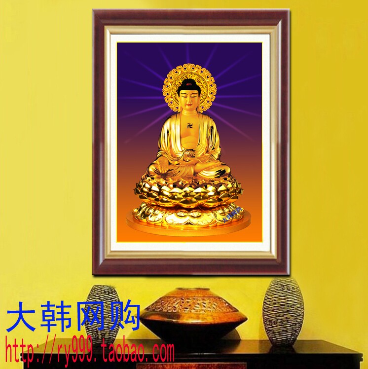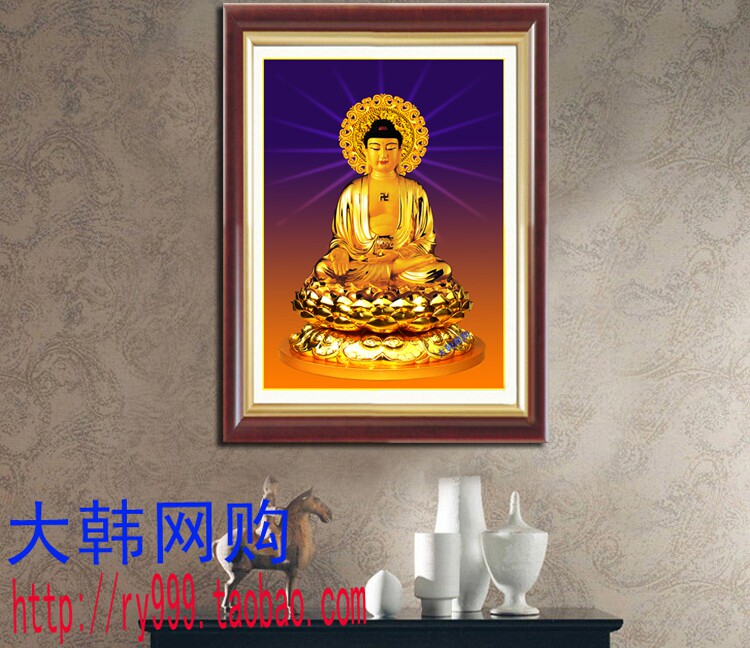Buddhist West Three St. Buddha's BodhisattBodhisattva Western pole music world teaches main Amitabha Buddha Cross embroidered living room hanging painting
