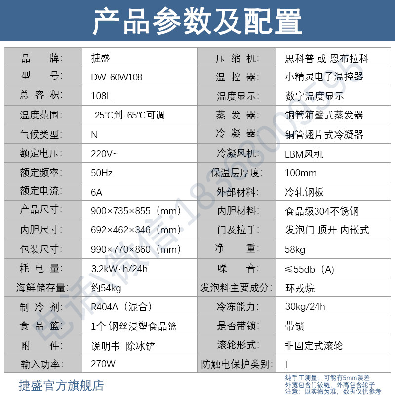 Jiesheng-60 ℃ ultra-low temperature freezer-40 frozen tuna horizontal freezer scientific research experiment-86 ℃ 108 refrigerator