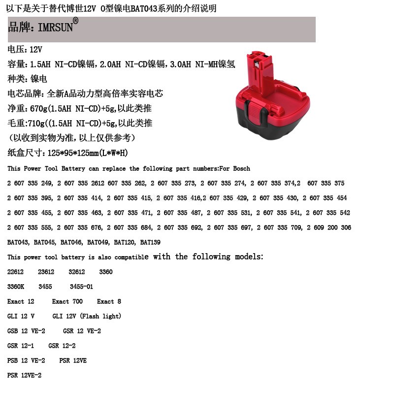 General Bosch 12V battery electric drill O-type BAT043 139 punching screw packer power tool rechargeable