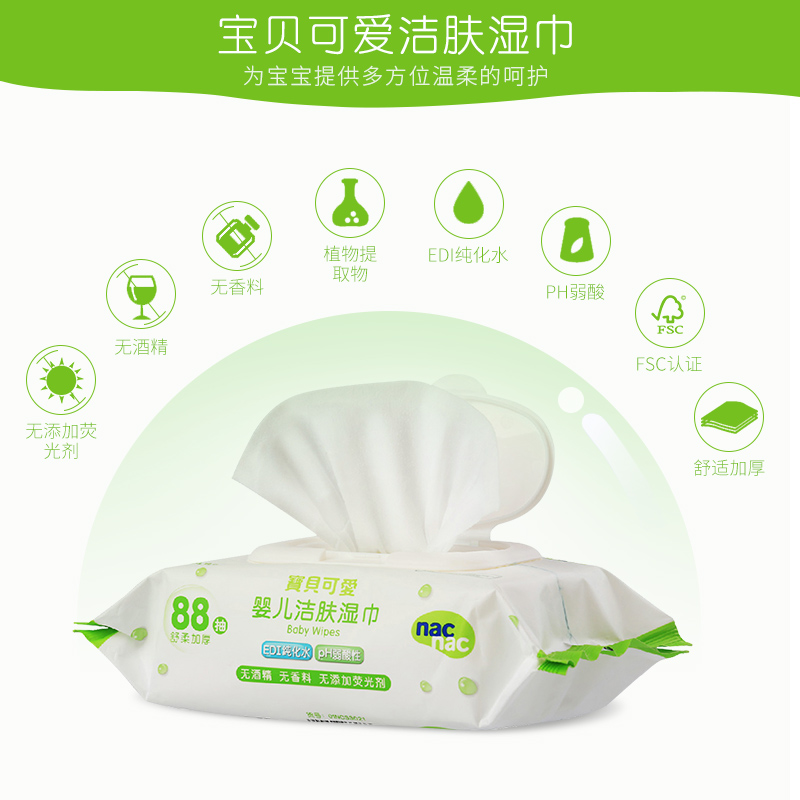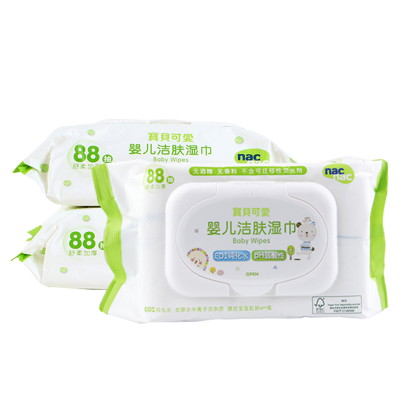 nac baby cute wet wipes 88 draw 3 packs with cover newborn baby toddler special big package baby wet paper towels