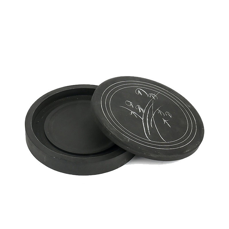 Rograin Inkstone Bench Four Inch Double Sink Diameter 10cm Meter Stone Inkstone With Lid Four Inch Rograin Natural Raw Stone Grinding Inkstone Preliminary Entrance Door Book French Painting Supplies Ink Box with lid ink Terri ink