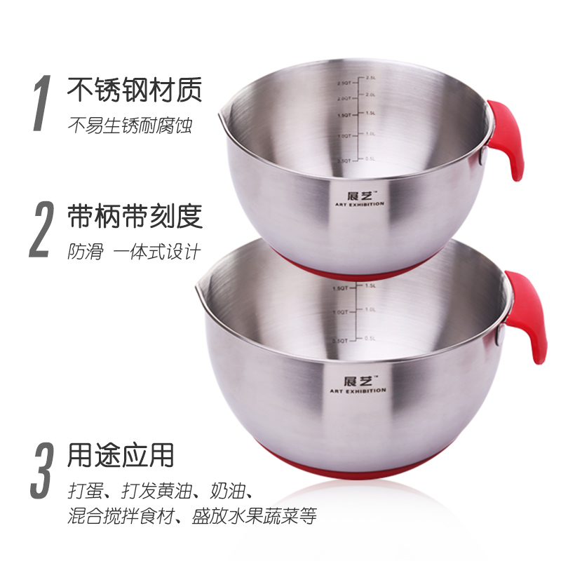 Zhanyi flagship store 304 stainless steel with scale egg bowl and noodle dish basin Washing basin Baking tools
