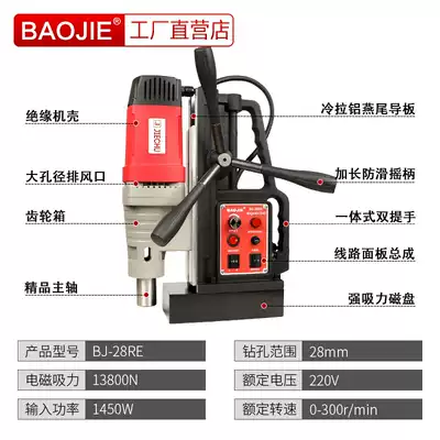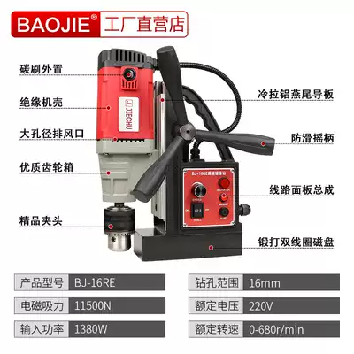 Baojie magnetic drill magnetic seat drilling machine small light portable industrial grade high power Multifunctional Suction iron drill tapping