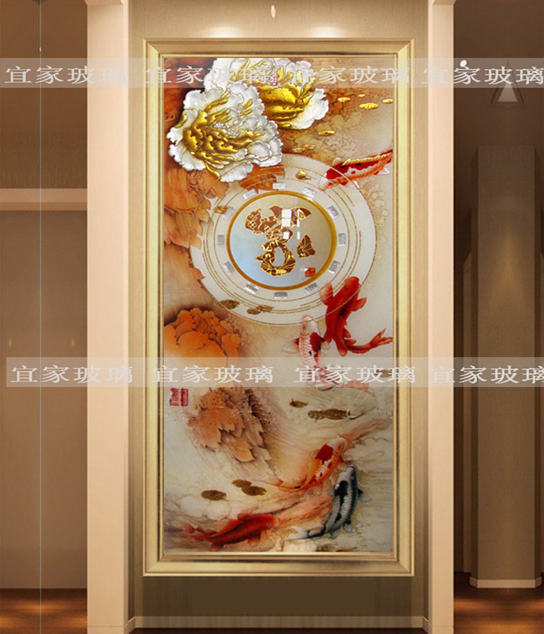 Shanghai art glass porch background wall deep carving contemporary style partition porch rich and surplus fish home TV
