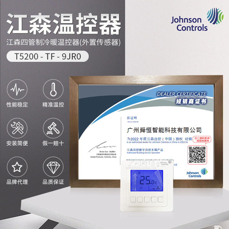T5200-TF-9JR0 Johnson Fans Coil Thermostat Four-pipe external sensor LCD thermostat