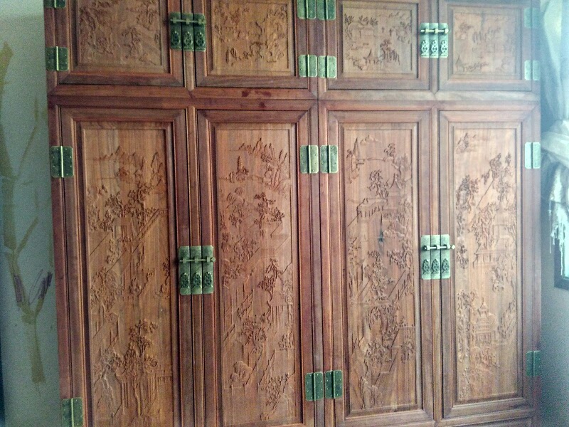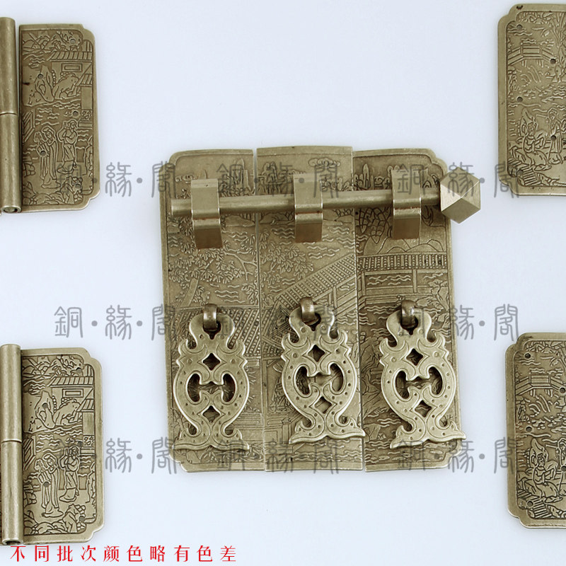 Landscape character top box cabinet copper accessories Ming and Qing Dynasty Chinese style kit antique pure copper mahogany furniture two-panel cabinet