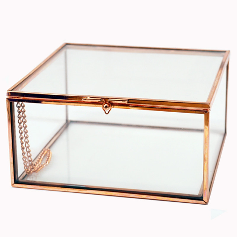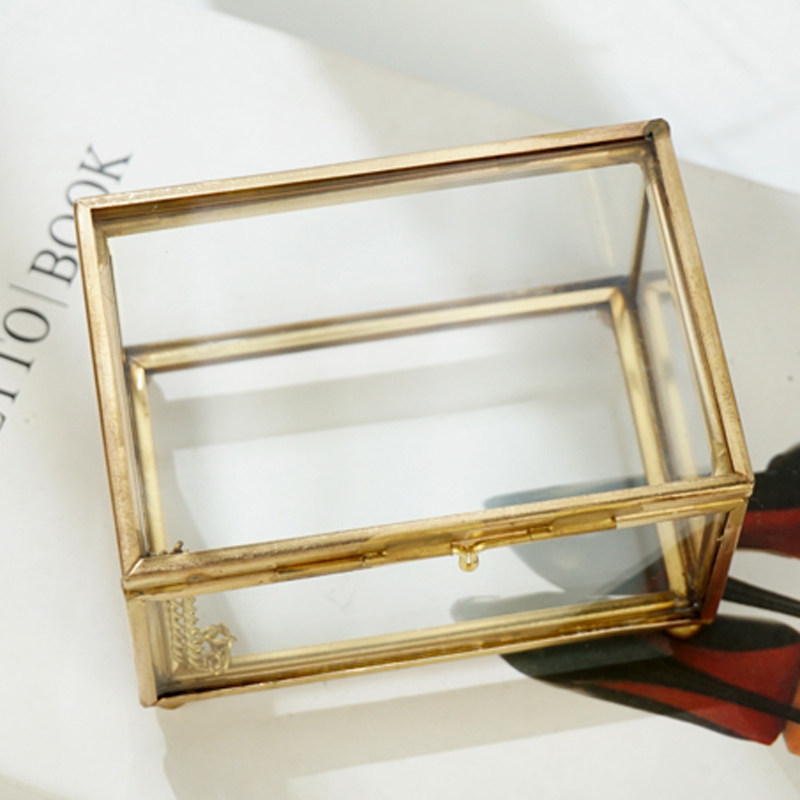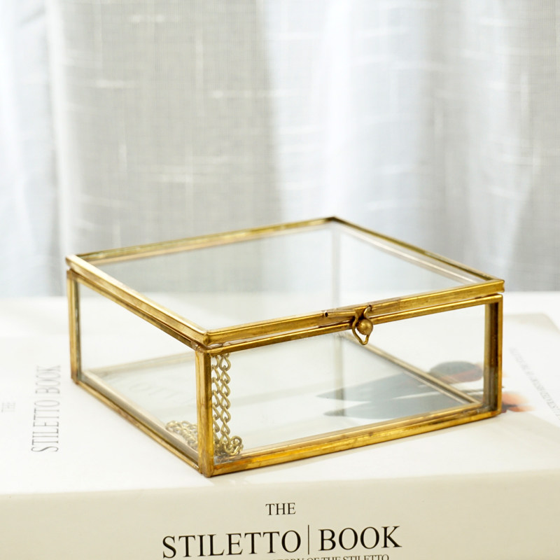 Eurostyle Net Red Retro Made Old Bronze Color Classic Square Glass Case First Decorated Box Antique Containing Box Glass Jewelry Box
