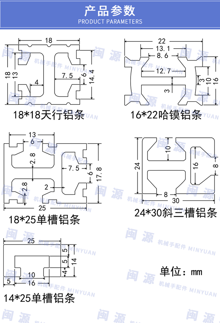 Tianxing aluminum strip 18*18 pneumatic tool manipulator accessories special aluminum strip manipulator aluminum extrusion material double sink aluminum strip