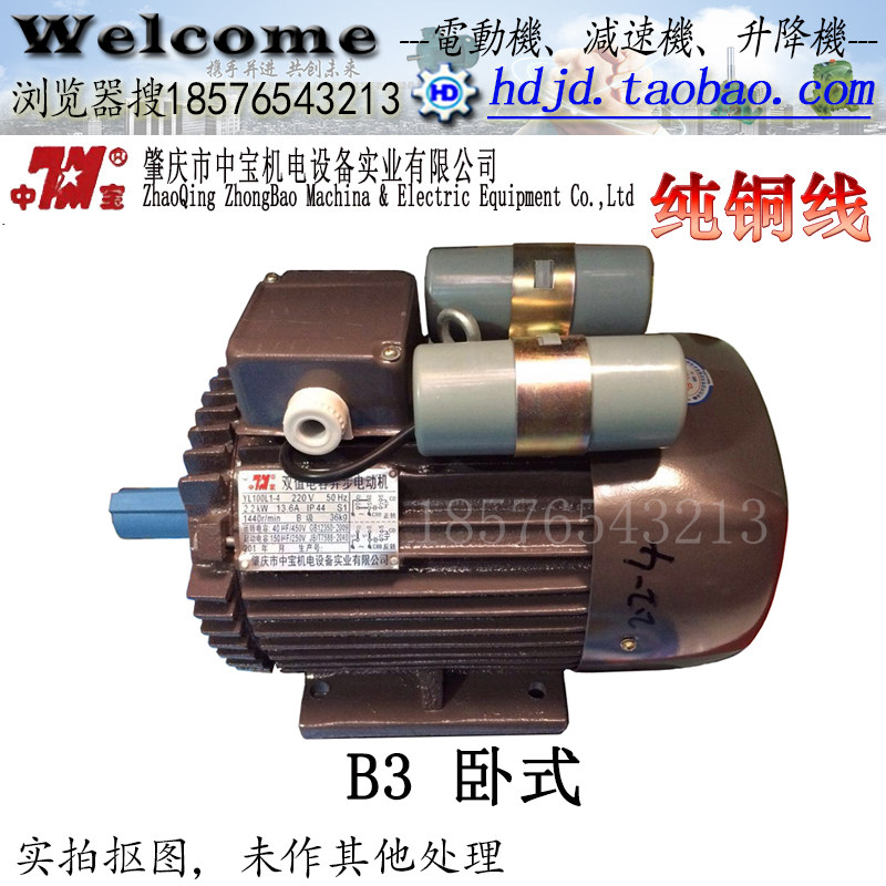 Zhaoqing Zhongbao YL90S-4 1 1KW single-phase 220V dual-value capacitor motor 1400 rpm vertical horizontal
