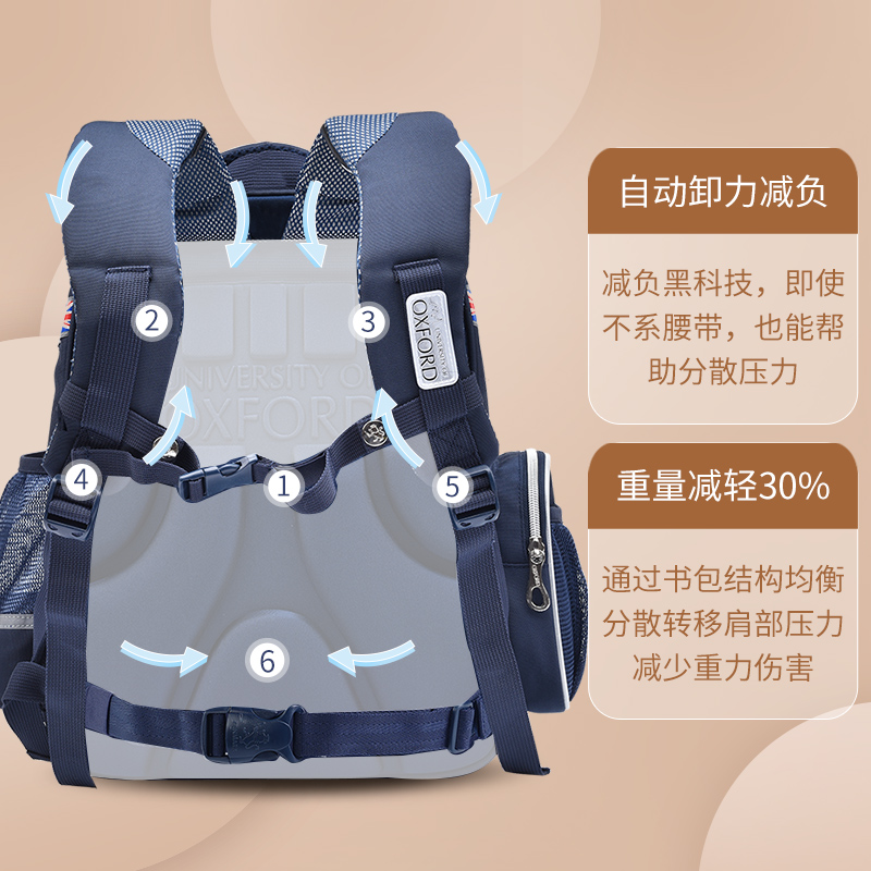 Oxford University School Bag Primary School Student Boys First and Second Grade Three to Six Children Reduce The Burden Of The Spine Protection Light Shoulder Four