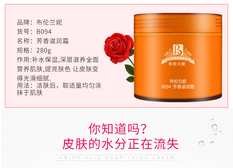 Brenlani B094 aromatic moisturizing cream 280g moisturizing cream brightens skin Huaxin Beauty Salon counter