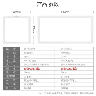 18W Integrated ceiling light 300*300 24W Integrated ceiling light 300*600 Fog silver 300*300 fog silver 300*600 Fog champagne gold 30