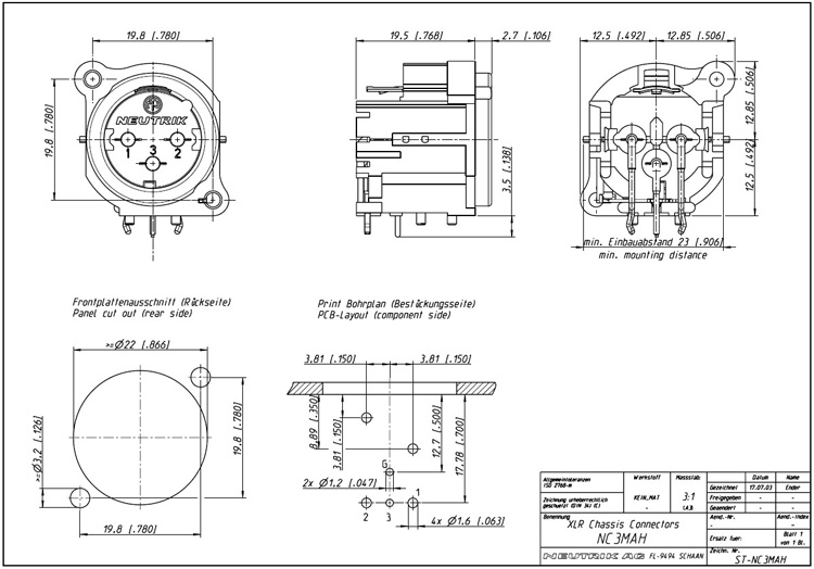 (NEUTRIK) The new Swiss Newchuk gold plated Canon balance input seat (both male and female)