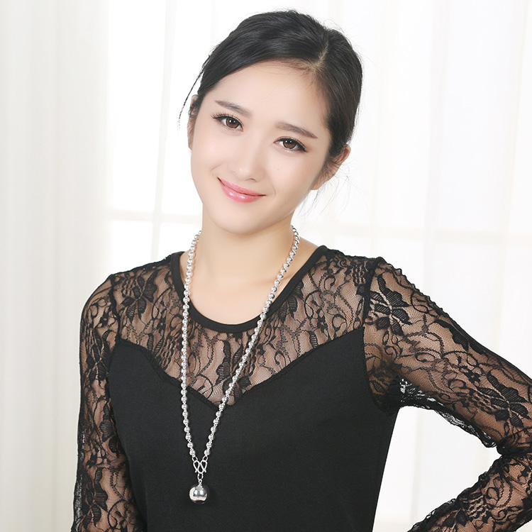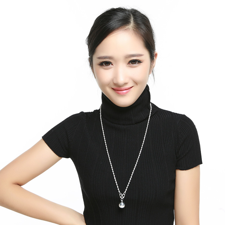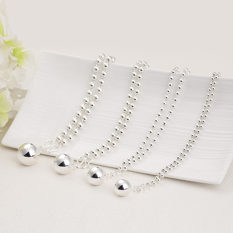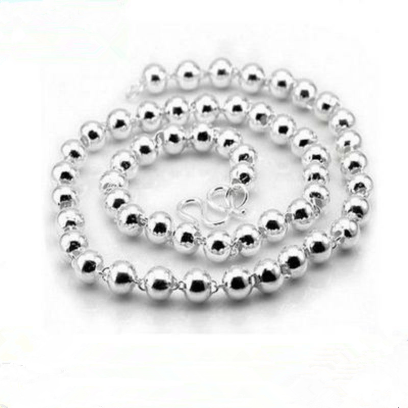 Counter 999 sterling silver necklace Women's long silver beads round beads sweater chain Men's Korean version silver Buddha beads chain
