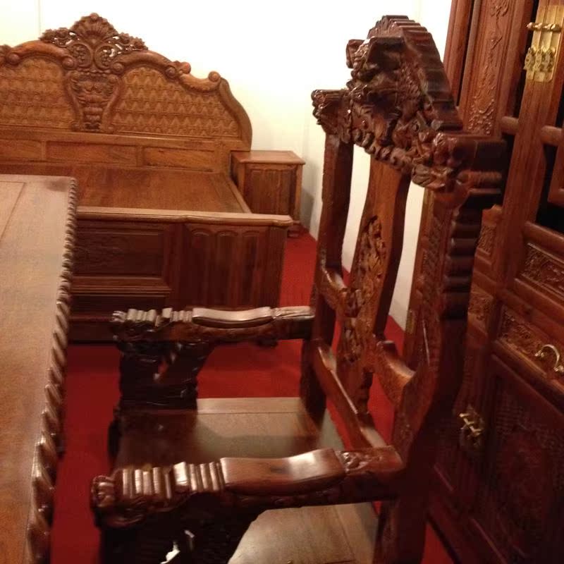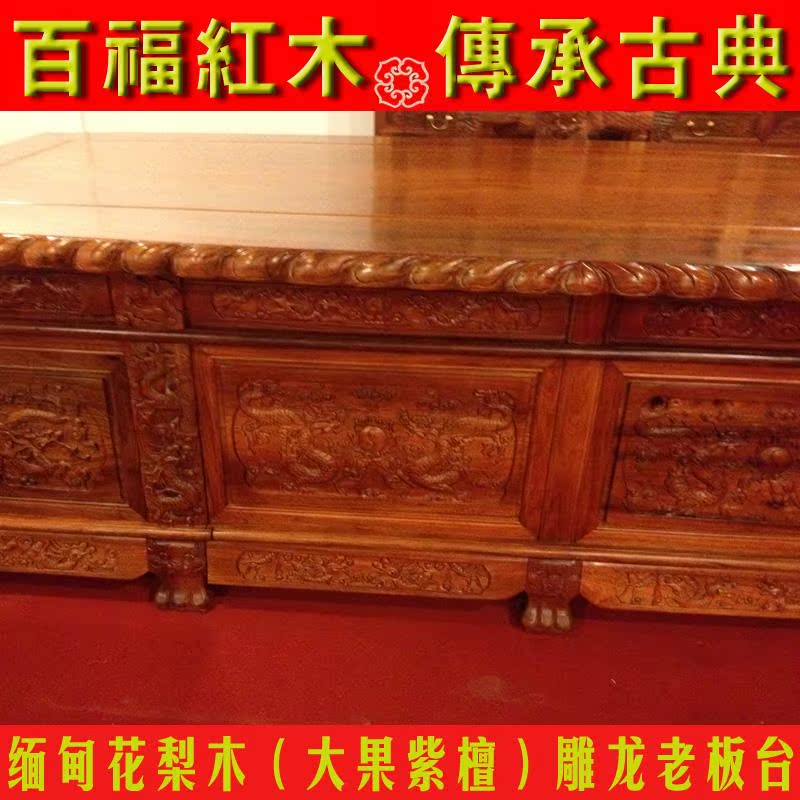 Myanmar rosewood big fruit rosewood Modern Chinese mahogany 2 meters 8 boss table carved dragon domineering desk