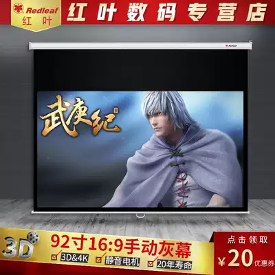 Red leaf projection screen 92 inch 16:9 home HD manual lifting projector screen affixed to the wall hanging screen Home theater manual screen self-locking screen punch-free