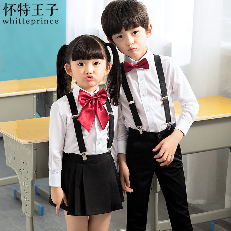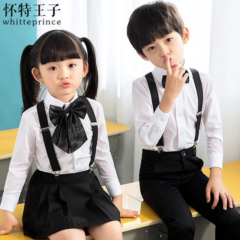 Black shorts boy hug bagged (white shirt black shorts hug bag collar tie) black short girl cuddling bagels (white shirt black short dress with baby bag collar flowers) black classic men 's