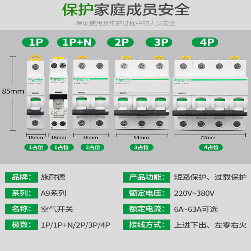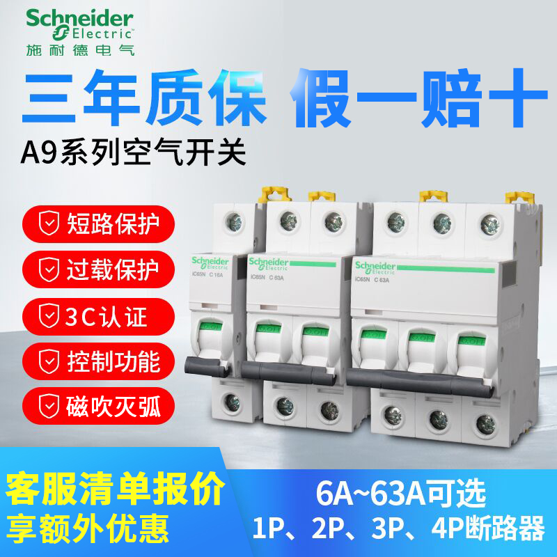 Schneider Air Switch Ic65n Circuit Breaker 1P 32A Air-Open 2P Home 63A4P Without Leakage Protector