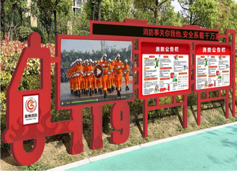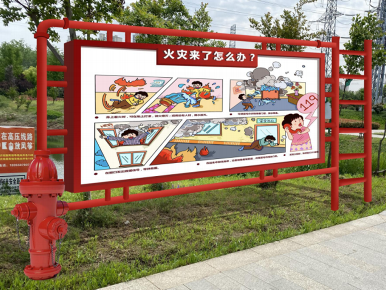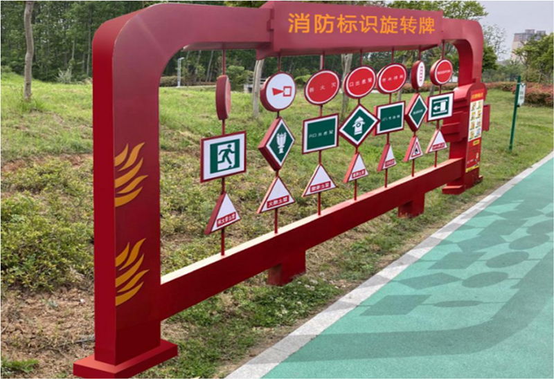 Fire theme park landscape sketch logo Fire knowledge science column flip card Park chair fire sculpture