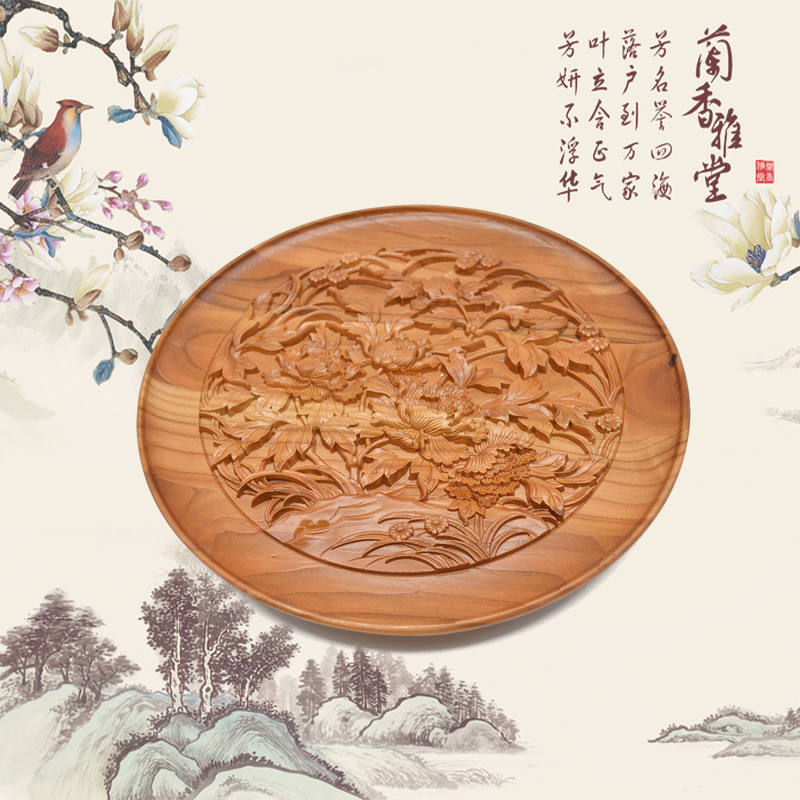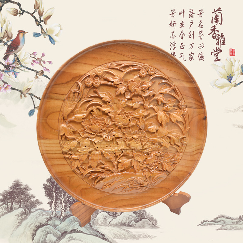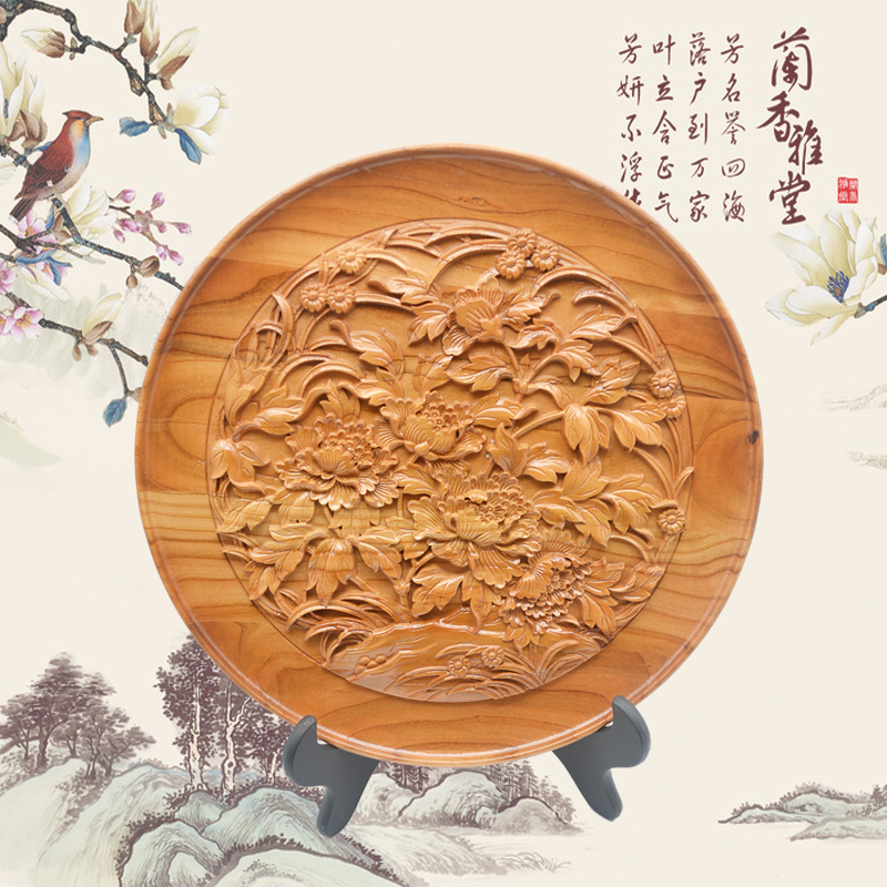 Peach wood pendant ornaments, flowers blooming, rich and noble feng shui ornaments