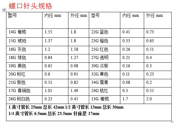 14G Olive colour outer diameter 1 8 (100) 15G Amber Platinum color (100) 16G grey (100) 18G Green (100) 19G grey brown (10)