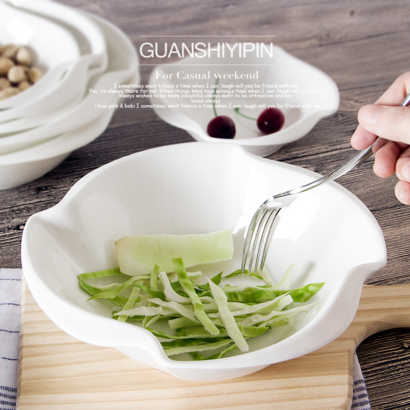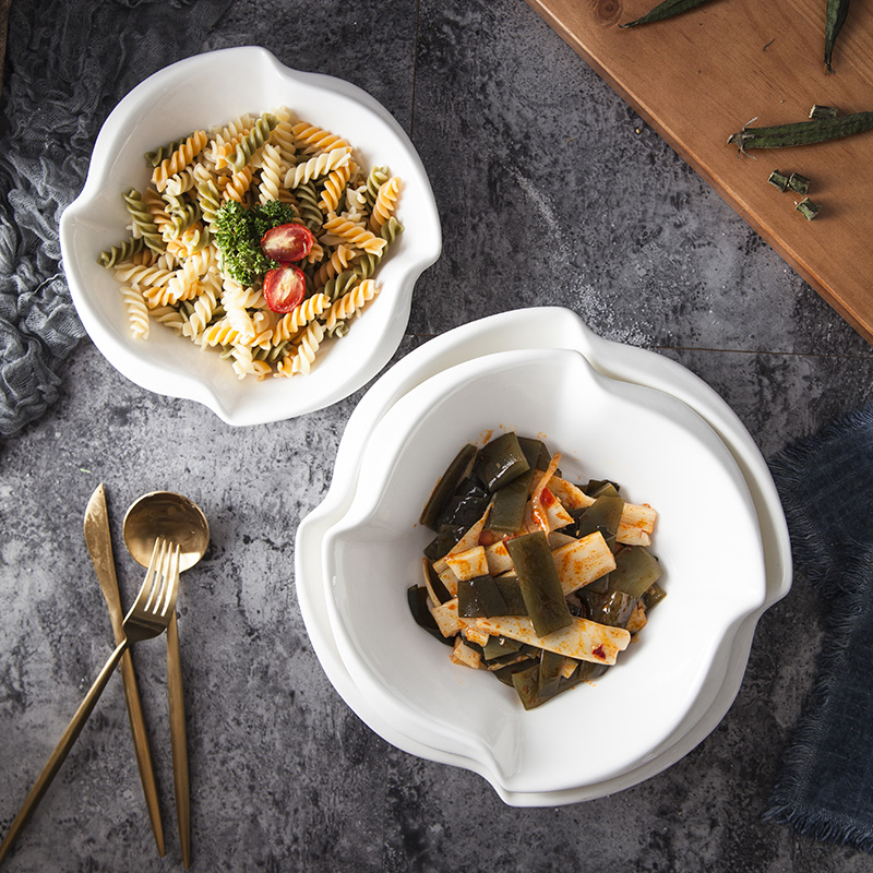 Creative Shaped Hotel Ceramic Rice Bowl Soup Bowl Pure White Fruit Salad Bowl Snack Bowl Large Soup Bowl Soup Pot