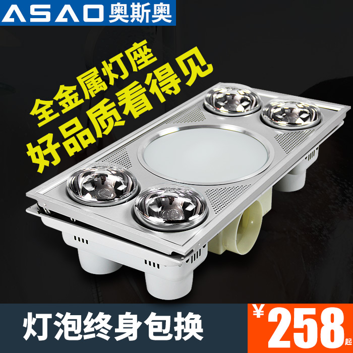 Lamp Warm Bath Bully Integrated Ceiling Makeup Room Four Lamps Three-in-one Warm Light Exhaust Fan Lighting 300x600
