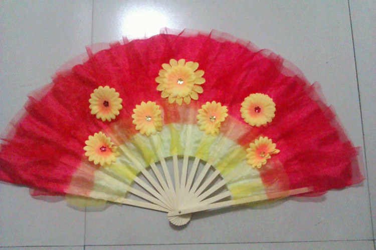 With flower-seedlings cabaret fan 2-person turn fan dance fan Children dance fan Dancing Fan square dance fan