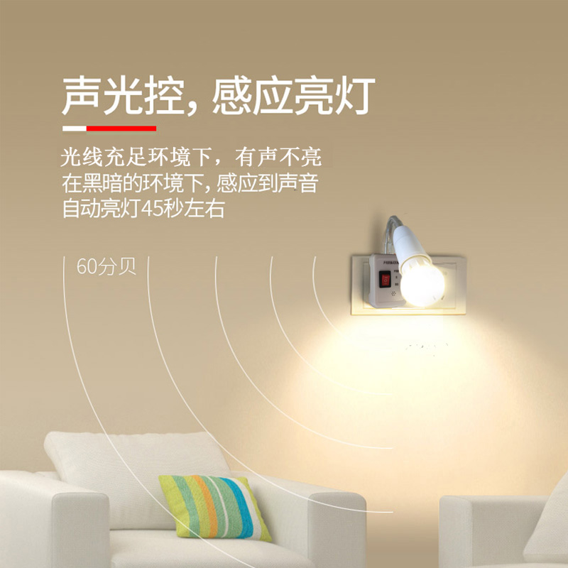 Intelligent voice control LED night light Sound and light control switch Lamp holder Lamp holder Household aisle corridor plug-in inductive sensor light