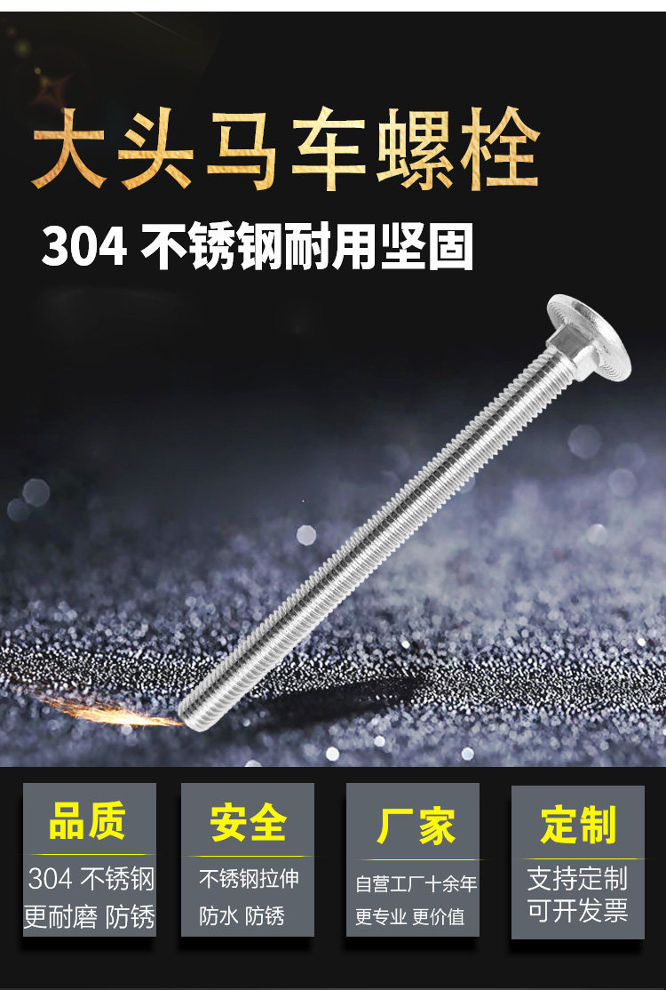 GB12 304 stainless steel carriage screws Semi round head square neck bolts shelf screws M8*12-M8*90