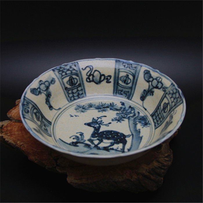 Ming Dynasty Blue and White Deer Porcelain Bowl Jingdezhen Old Goods "Out of Print Old Goods" Antiques and Antiques Collection