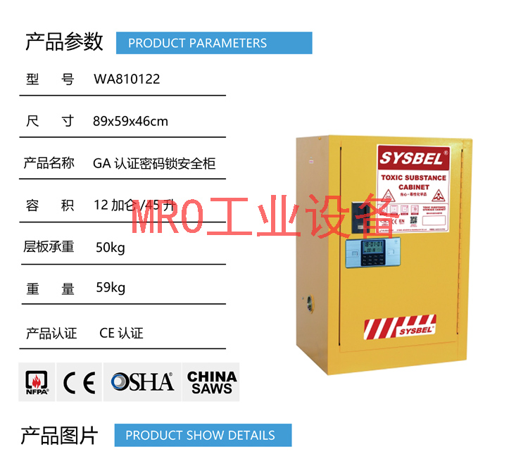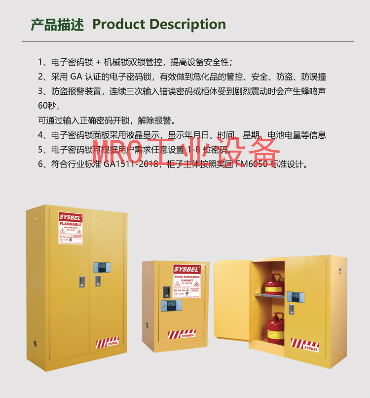 Sisbel 12 gallon liquid fire protection explosion-proof security storage cabinet GA certified password lock container WA810122