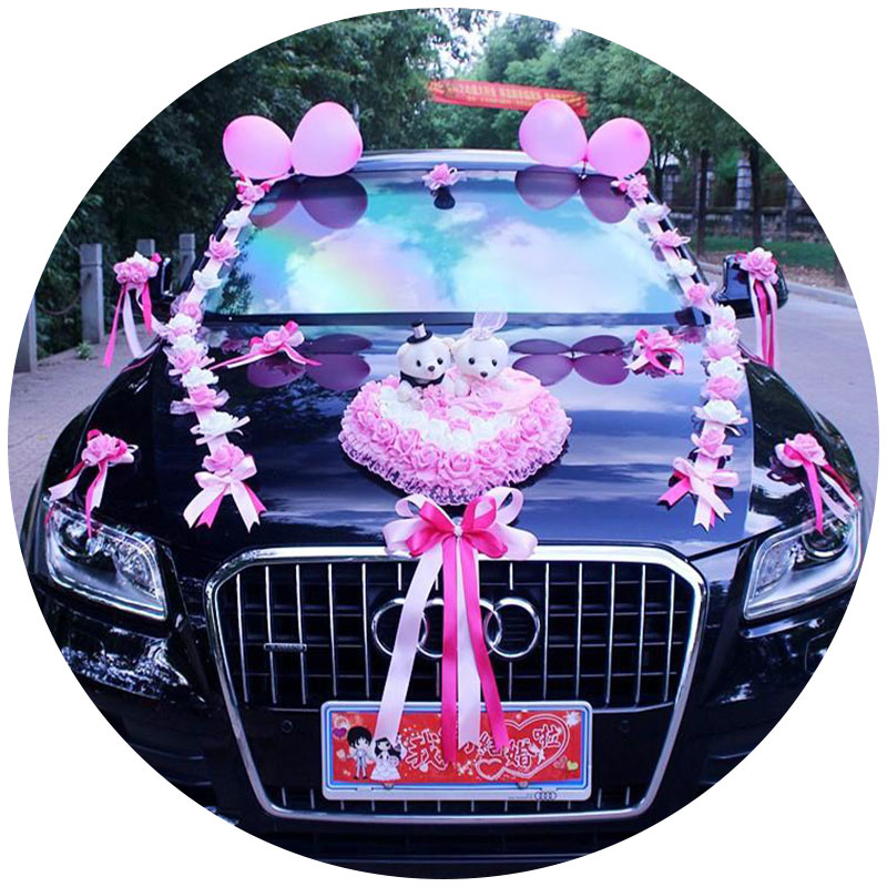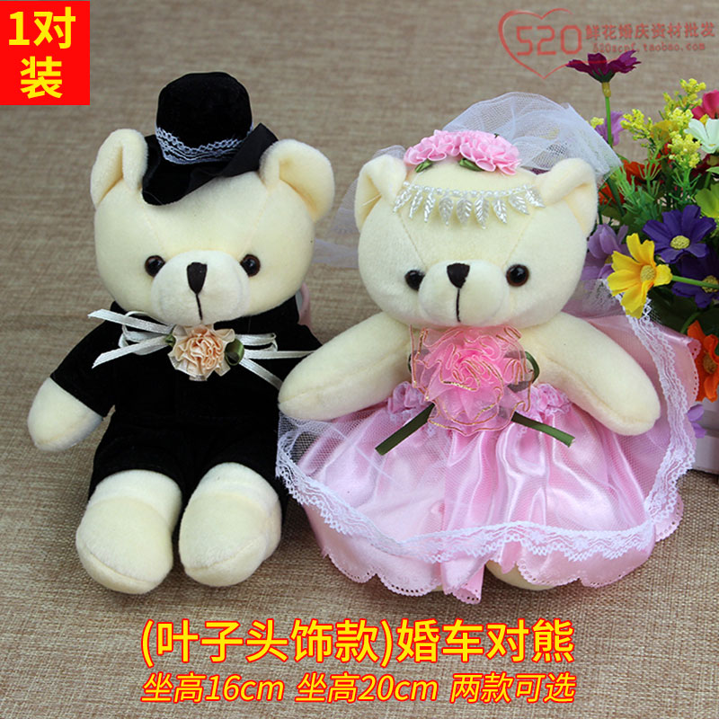 Wedding car to bear wedding decoration crown plush doll flowers cart front doll a pair of furnished cartoon gift supplies