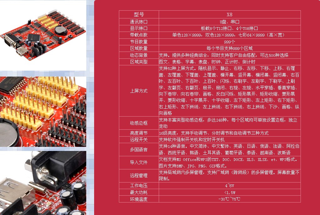 X8LED control card Kale LED control card LED U disk control card LED card full color screen