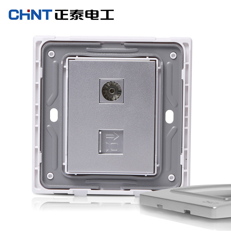Chint Electric Steel Frame Wall Switch Socket Panel NEW7L Gentleman Silver TV Computer Socket