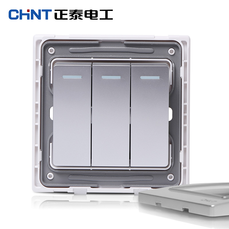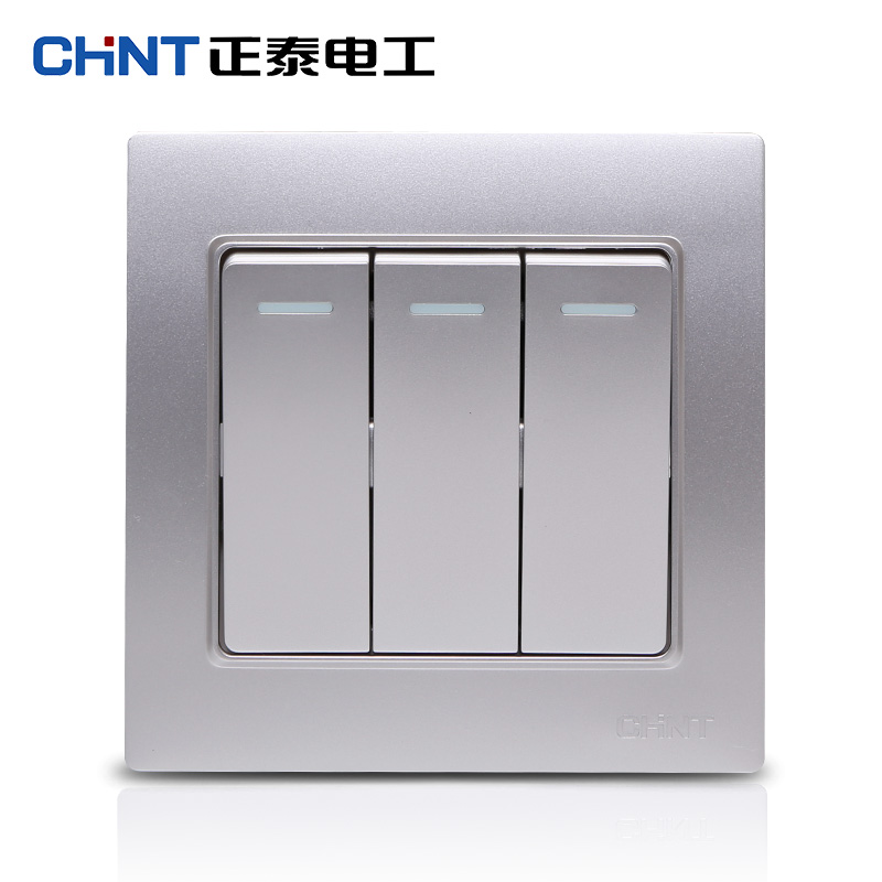 Zhengtai Electrician Steel Frame Wall Switch Socket Panel NEW7L Gentleman Silver Three Open Single Control Switch Panel