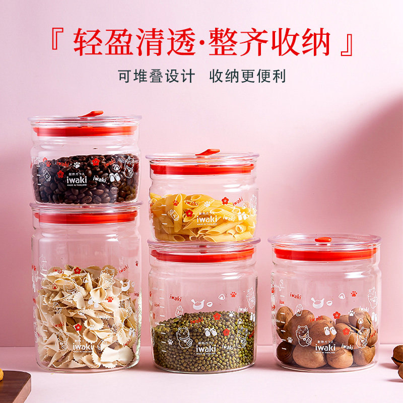 Japan iwaki Yiwanjia Heat-resistant glass sealed tank fresh storage tank Tea milk powder food storage set