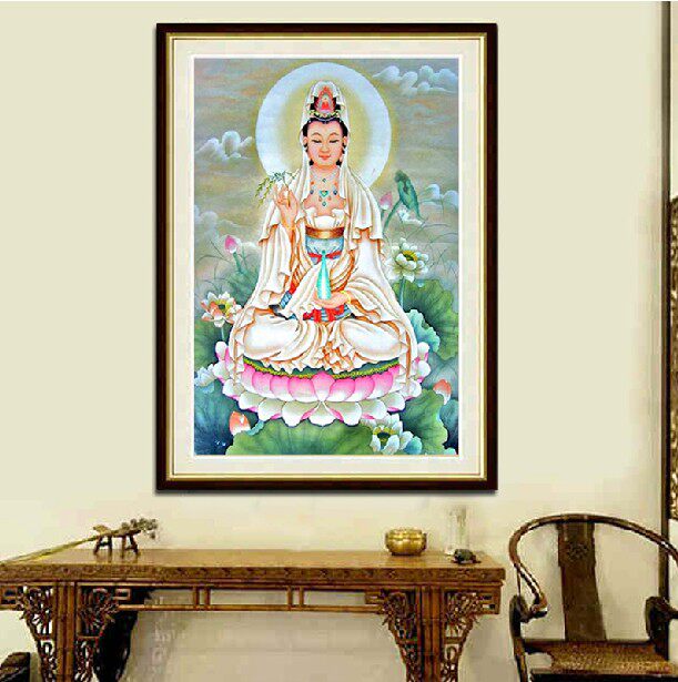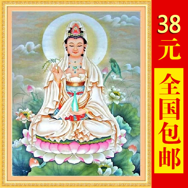 Guanyin Bodhisattva statue cross-stitch Buddha 2020 new full diamond painting living room send son sitting lotus Guanyin full embroidery thread embroidery