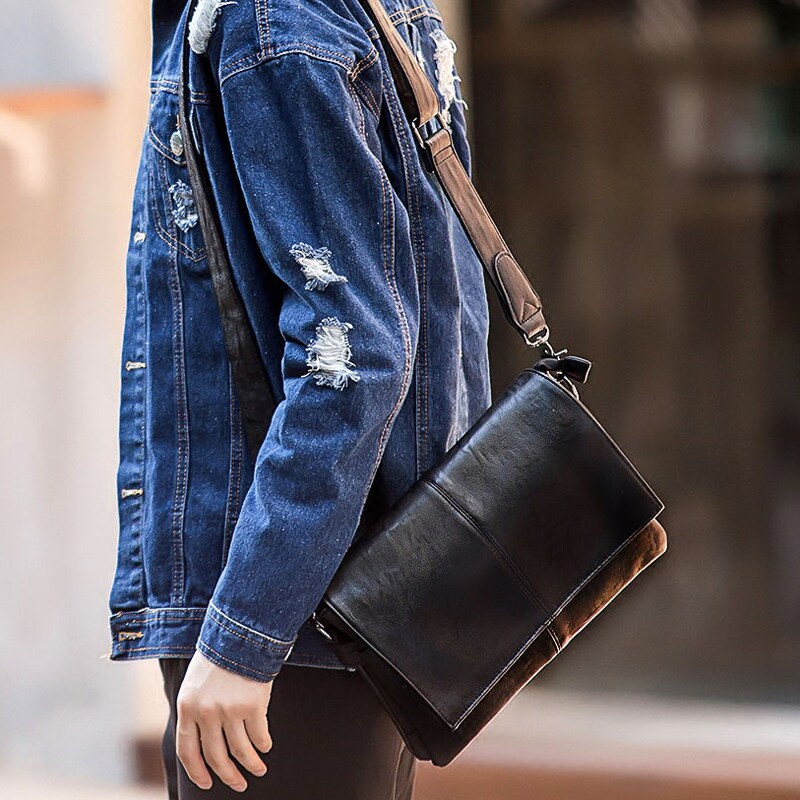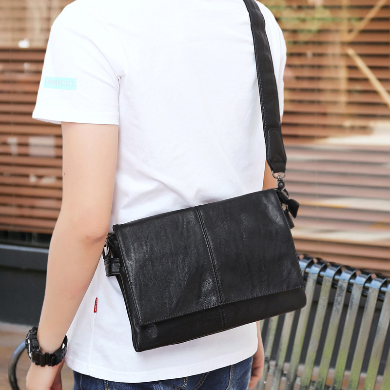 Genuine leather men's small leather bag Han version of soft leather single shoulder slanted satchel fashion 100 lap personality casual ipad male bag cow leather