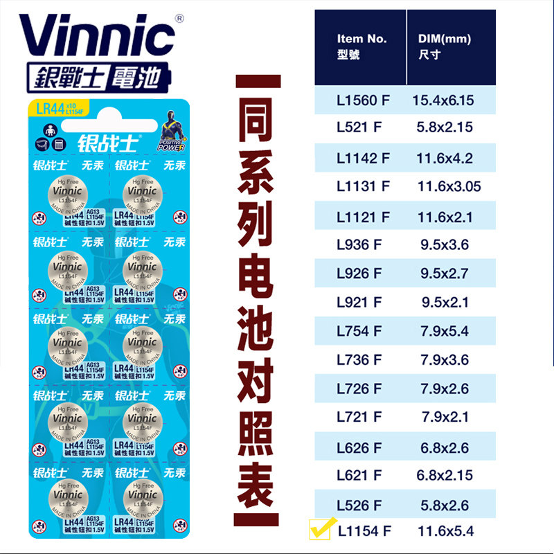L1154f button ag13 battery lr44 a76 357a sr44 universal vinnic calculator children's toy masked rider belt Bandart spinning top