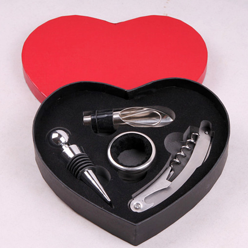 New Heart-shaped Carton Bottle Opener Three-Piece Set Red Wine Wine Cork Pourer Wine Set Wedding Promotional Gift