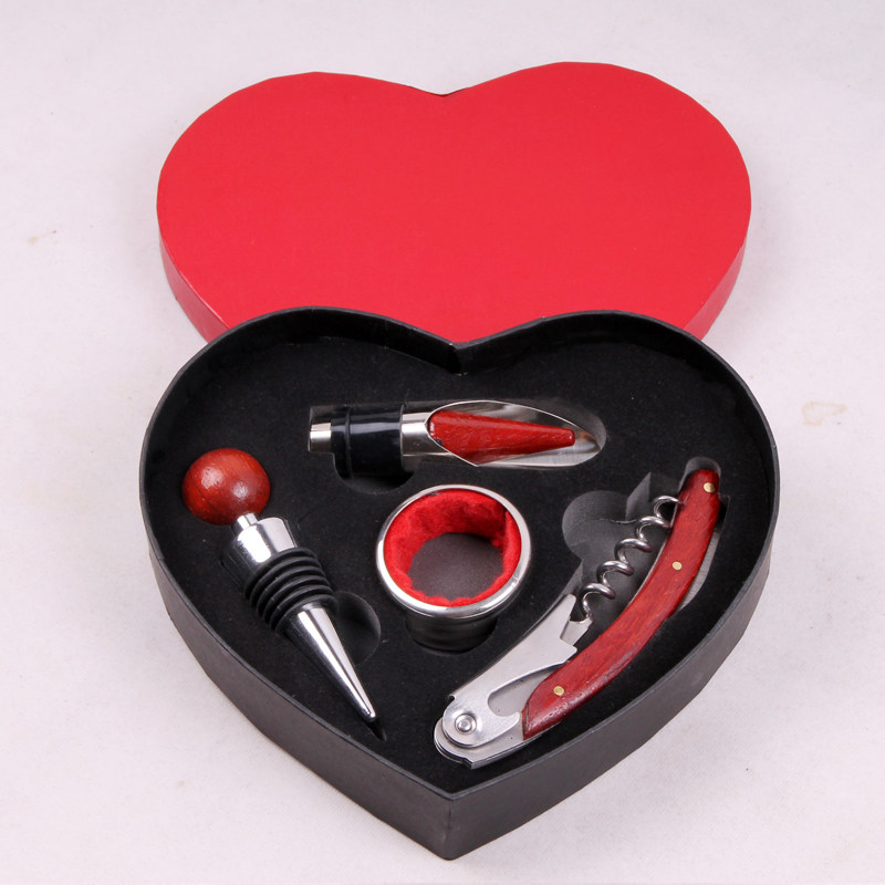 Heart-shaped bottle opener three-piece sanding open wine stopper wine pourer wine ring rosewood corkscrew wine stopper wine pourer wine ring