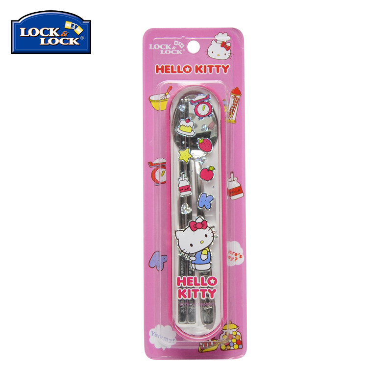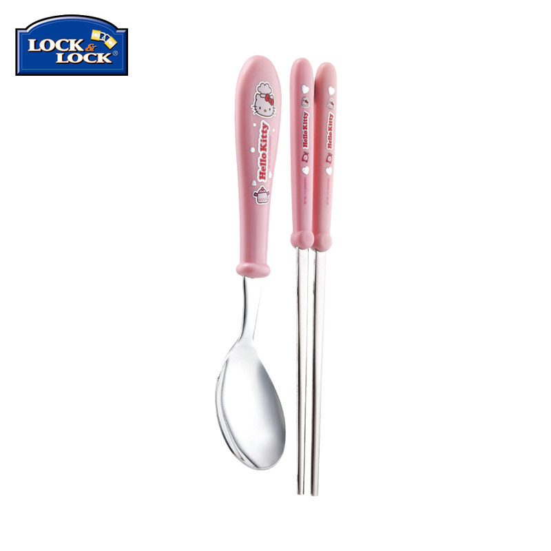 Korean Music Buckle Hello Kitty Baby Cutlery Series Stainless Steel Spoon Chopsticks Set Pink