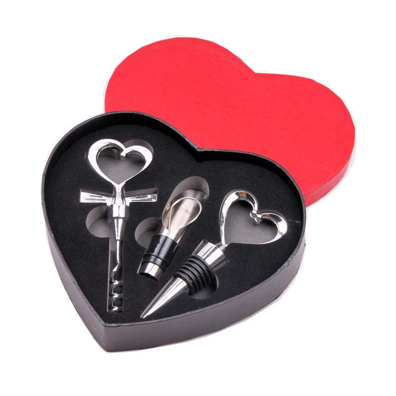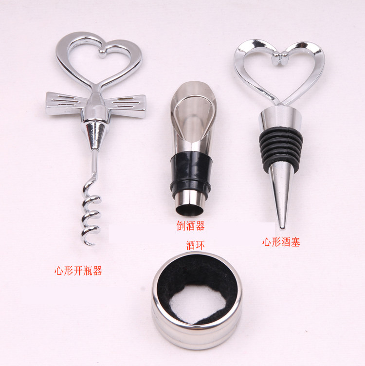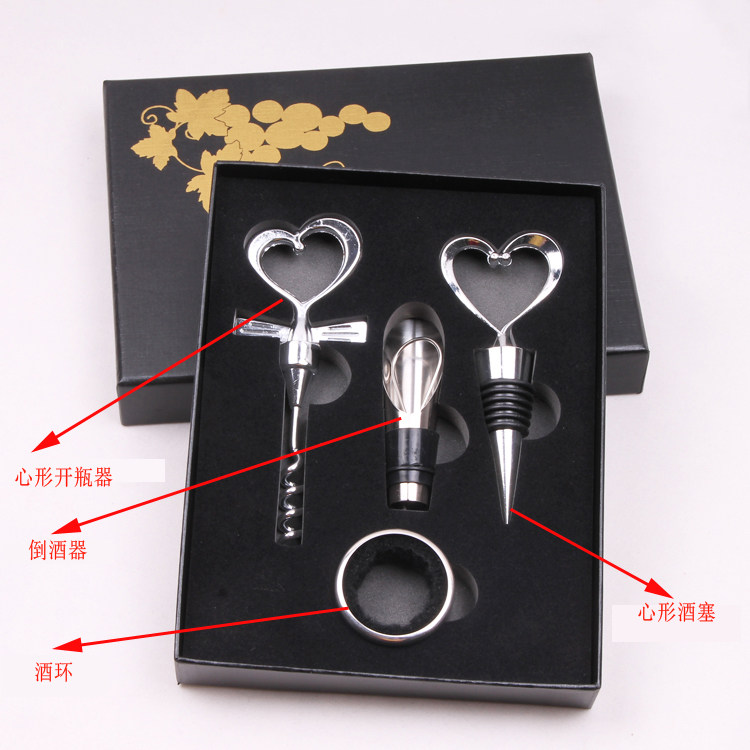 Heart-shaped red wine corkscrew wine bottle cork couple four-piece wine wine set promotional gift wedding can print LOGO