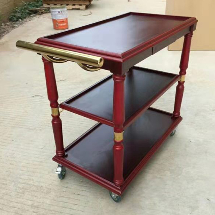 Snackcar mobile trolley mobile three-story service car mobile solid wooden cart fast breakfast breakfast multi-function dining car