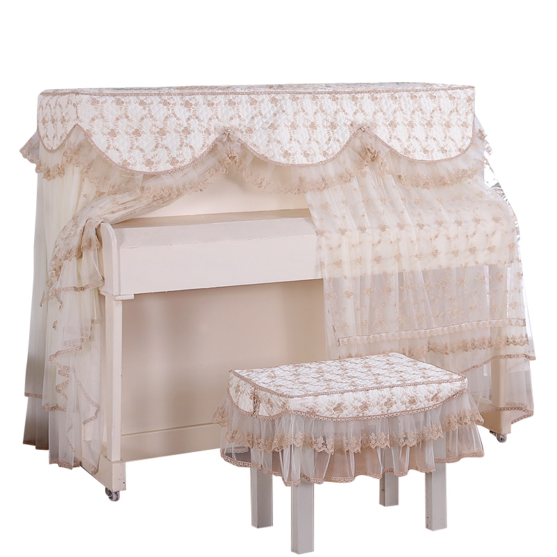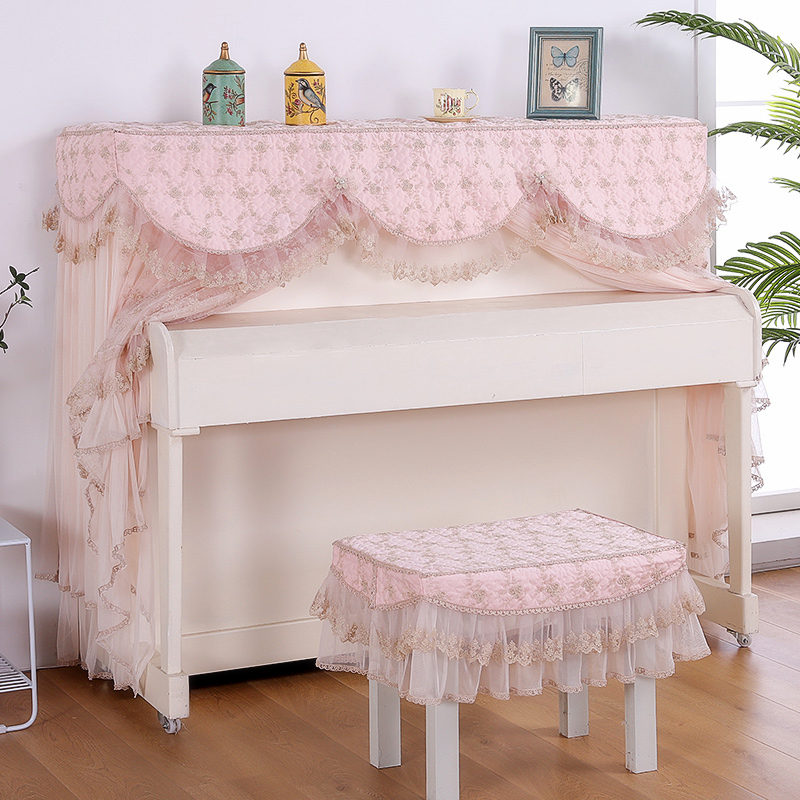 High-grade piano cover stool cover two-piece piano cover pink lace jacquard lining dust-proof full cover