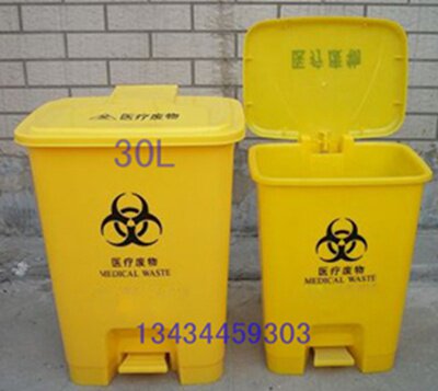 30L medical garbage can pedal yellow medical waste dirt bucket medical recycling bucket thickened medical garbage bag