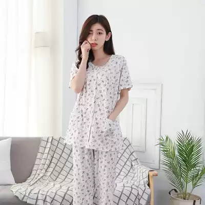 Middle-aged mother pajamas Lady summer short-sleeved Capri pants female pajamas cotton middle-aged and elderly short-sleeved female home wear