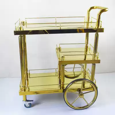 Antique new wine truck stainless steel titanium alloy dining car Hotel Club KTV hand push wine snack service car